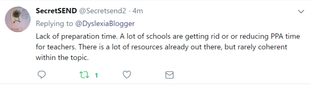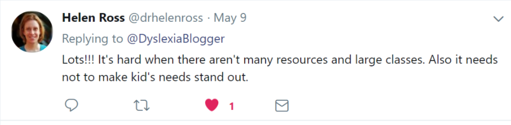 @Teach4dyslexia replied on Twitter to highlight that limited budgets also mean a compromise on quality of learning materials and intervention.
