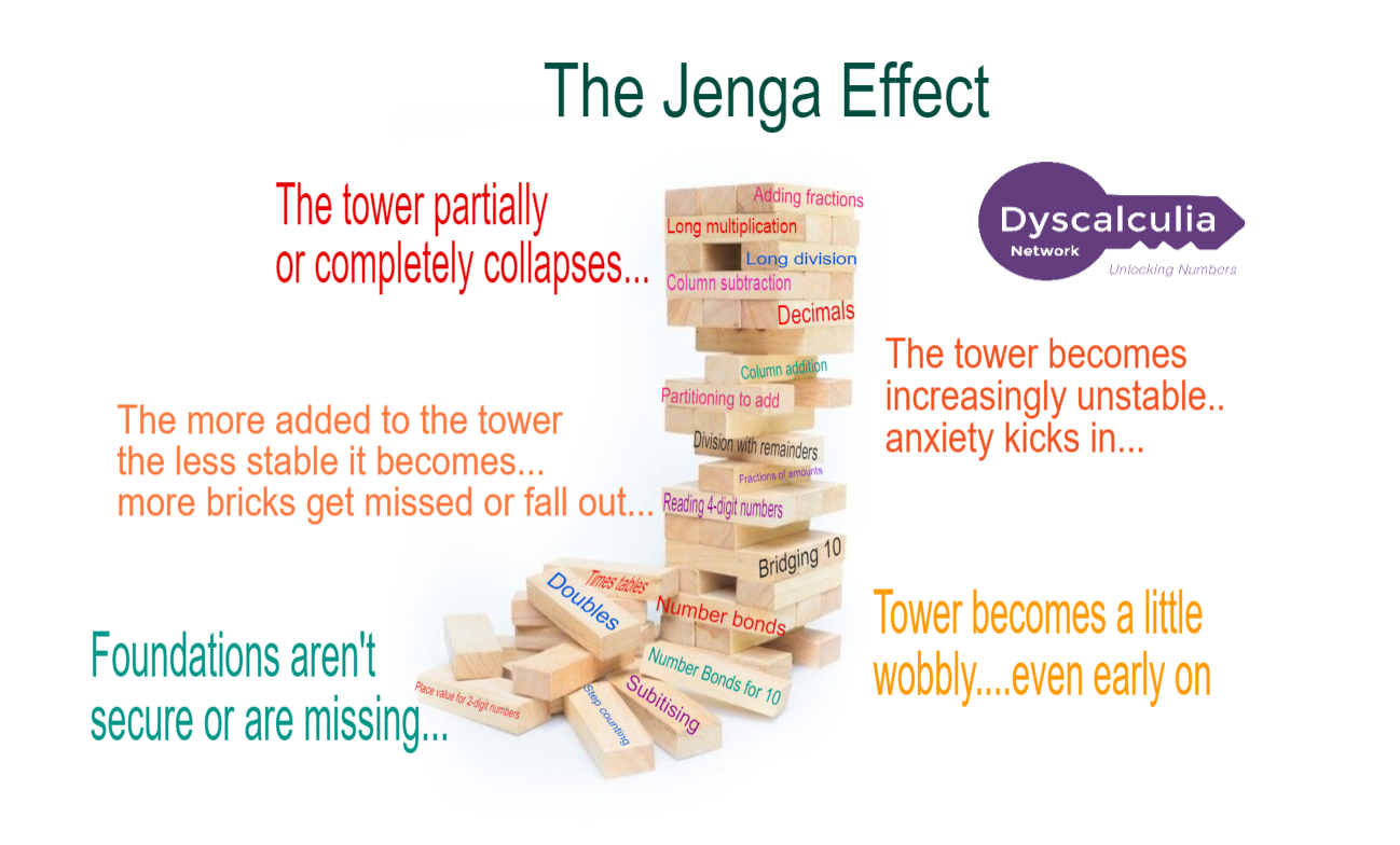 The Jenga effect is when the foundations of maths aren’t secure and this then impacts every ‘layer’ of maths learning that follows it.
